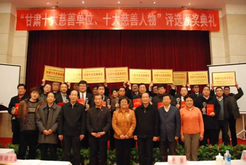 由甘肃省慈善总会和甘肃日报社联合主办、每日甘肃网独家承办的2010年甘肃省十大“慈善单位”、“慈善人物”颁奖典礼于2010年12月28日在兰州举行。经过激烈角逐,甘肃国芳工贸集团股份有限公司荣幸地被评为“甘肃十大慈善单位”之一。