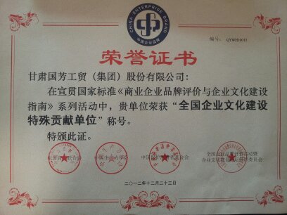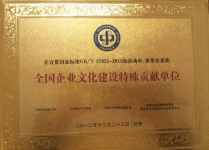 2012年度“全国企业文化建设特殊贡献单位”荣誉证书