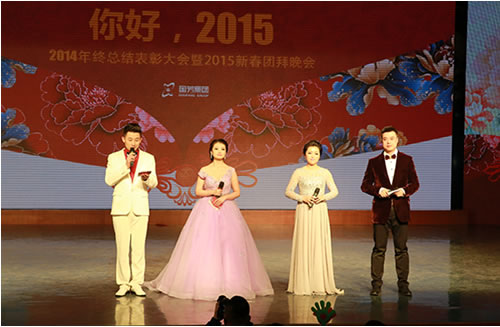 2015年2月9日晚,在兰州37中(兰州女子专业中等专科学校)5楼艺术厅内,国芳集团“你好,2015”2014年终总结表彰大会暨2015年新年盛典温馨开演。恰逢国芳集团成立十五周年,晚会现场充满了温馨、喜庆和感动。晚会延用了去年的大型LED显示屏、多组VCR、微信平台等广受好评的元素,并创新的融入了中华名族传统的礼仪文化,汉唐古典舞的壮观优美,员工孩子们《弟子规》的可爱表演,都在为晚会添加了精彩度的同时,将传承礼仪所需要的高尚美德这一思想深入的传达到每一位员工的心中。员工们精心准备的节目一个比一个精彩,极具艺术表现力和观赏性,董事长也被热烈的气氛所感染,亲自上台演唱了两首歌曲,把晚会推向了高潮。最后,国芳集团年终晚会在祥和热烈的气氛中落下了帷幕。让我们共同期待来年的精彩!