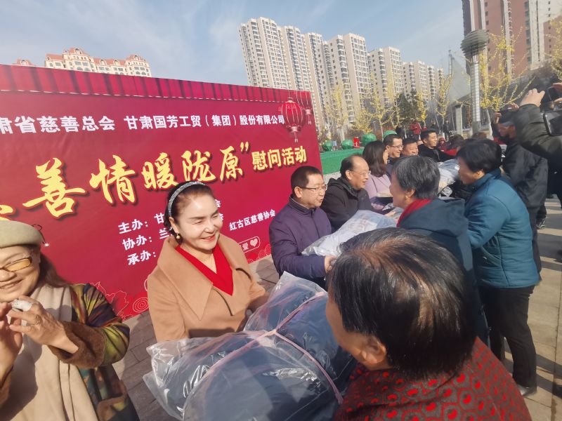 2020年1月14日,甘肃省慈善总会、兰州市慈善会以及红古区民政局携甘肃国芳工贸(集团)股份有限公司在兰州市红古区海石广场共同举行“慈善情暖陇原”暨物资捐赠活动,将2000件棉衣,1200余件秋裤,2000余件保温杯以及1000余件棉拖合计价值73.6万元的过冬物资带给兰州市红古区的困难群众。