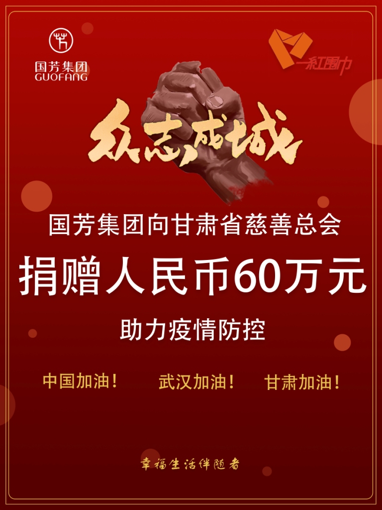 当前,新型冠状病毒感染的肺炎疫情防控正处于关键时期,社会各界紧急行动起来投入战斗。2月3日,甘肃国芳工贸(集团)股份有限公司通过甘肃省慈善总会捐赠人民币60万元用于此次疫情防控医疗领域。