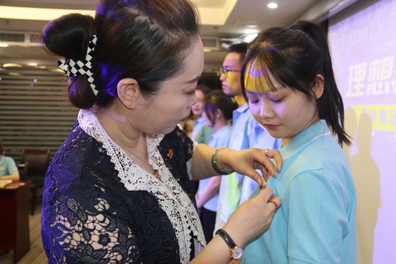在入职仪式进入尾声之际,进行授牌及赠书仪式,由国芳集团各位领导为新一届管理培训生佩戴工卡并合影留念,从此刻起,数十名管理培训生便正式成为了国芳集团中的一员。