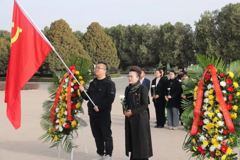 上午8时许,在庄严的革命烈士纪念碑前,全体党员高举党旗、肃穆列队,怀着无比崇敬的心情向革命烈士敬献花篮,鞠躬默哀,以表达对革命先烈的崇高敬意和深切悼念之情。