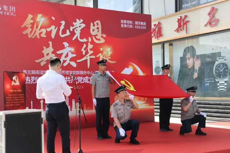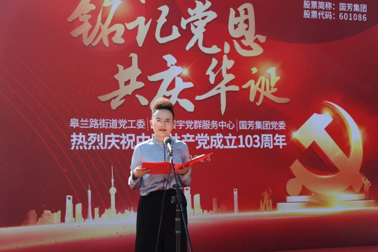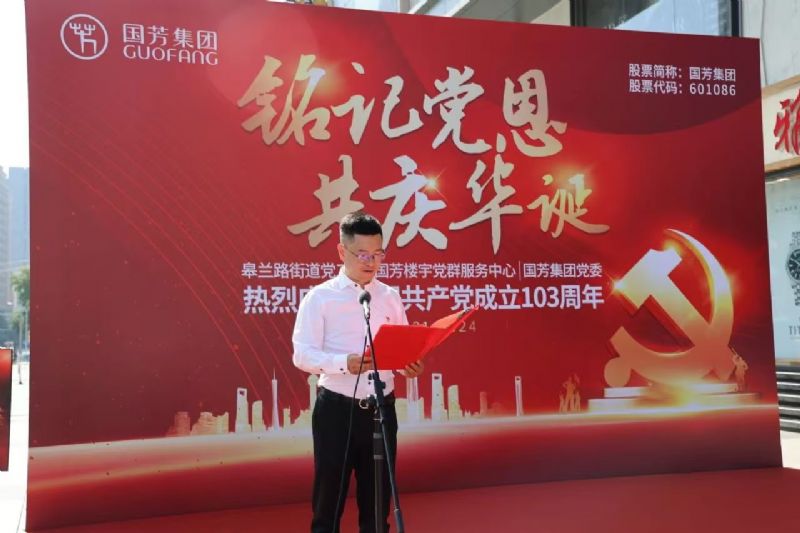 为庆祝伟大的中国共产党建党103周年,进一步贯彻落实党的二十大精神和习近平总书记关于党纪条例学习教育的重要讲话和指示精神,丰富党员和员工文化生活,在七一建党节即将来临之际,国芳集团党委协同皋兰路街道党工委、国芳楼宇党群服务中心入驻企业党组织共同举办“铭记党恩、共庆华诞”庆祝中国共产党建党103周年主题党日活动。