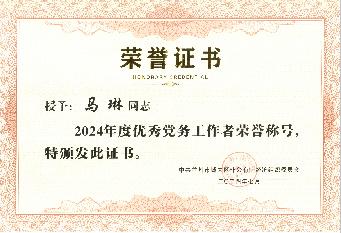 国芳集团在此次大会中表现出色。其中,党委副书记马琳凭借其在党务工作中的杰出表现,被评为 2023 年—2024 年城关区优秀党务工作者。马琳同志在工作中始终坚守职责,积极推动党组织建设,为集团的党务工作做出了重要贡献。