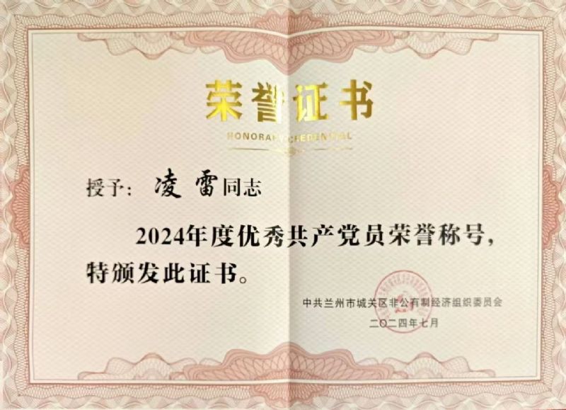 国芳综超党支部书记凌雷也以其突出的工作成绩,荣获 2023 年—2024 年城关区优秀党员称号。凌雷同志以身作则,充分发挥党员的先锋模范作用,在工作岗位上取得了显著成效。