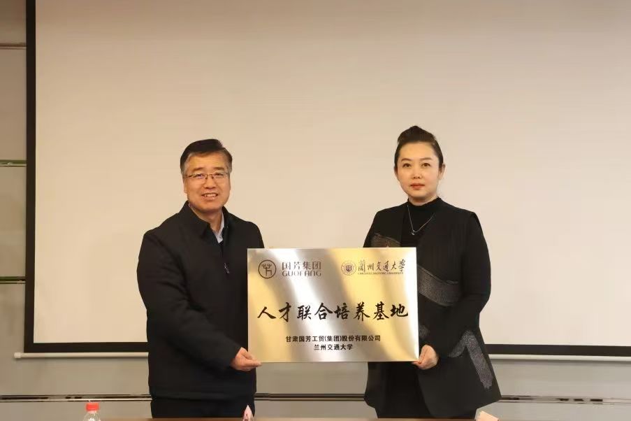 在热烈庄重的氛围中,兰州交通大学经管学院党委书记曾潮洁先生向国芳集团授牌,这不仅是一份象征荣誉的标志,更是双方深度合作的有力见证,承载着学校对企业积极参与人才培养的诚挚感谢,也寄托着双方对未来共同探索“产学研”融合新路径的期望。